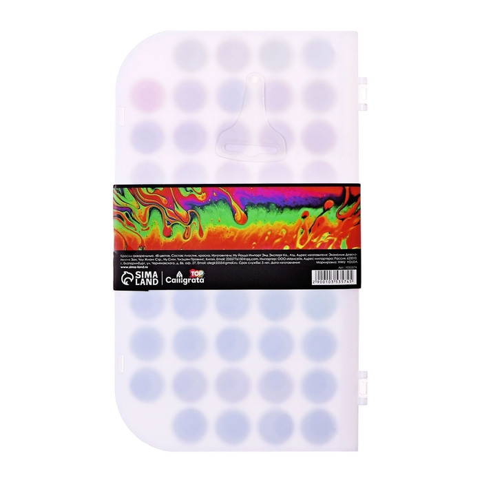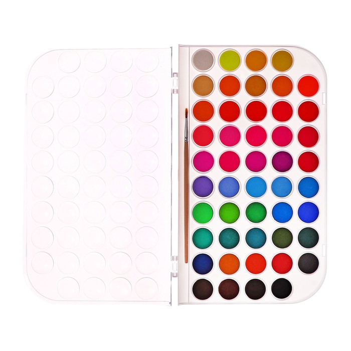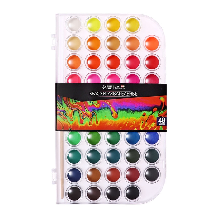 Краски акварельные 48 цветов, круглые, диаметр кюветы 23 мм, с кистью, пластиковый пенал, CALLIGRATA TOP