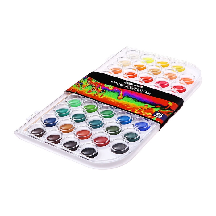 Акварель Calligrata, 48 цветов, разработана с учетом рекомендаций педагогов. Идеально подходит для занятий рисованием в детском саду, школе и дома. Яркие, чистые цвета развивают фантазию и интерес к творчеству. Акварель легко смывается с рук, отлично смешиваются между собой и позволяют создать множество оттенков, обеспечивают однородное окрашивание. Краски быстро высыхают и не портятся со временем. Безопасны для детей, нетоксичны. Выпускаются в пластиковом пенале с отделением для кисточки. Упаковка обладает компактными размерами и легким весом. диаметр кювета 23 мм.