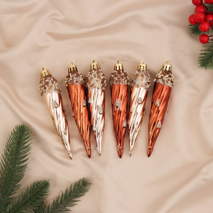 Украшение ёлочное "Сосулька верхушка блеск" (набор 6 шт) 13х3 см, золото коричневый