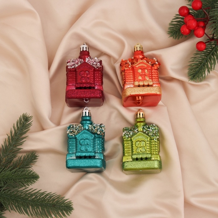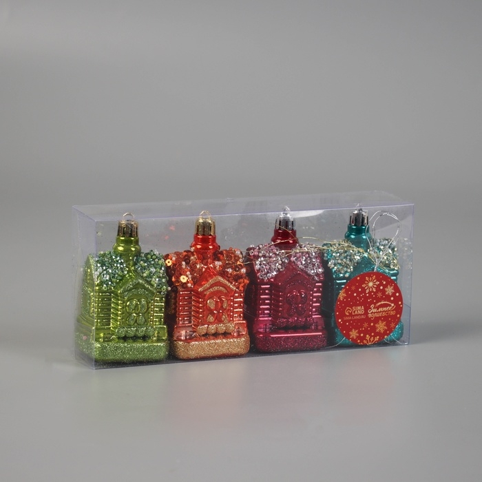 Украшение ёлочное "Сказочный домик" (набор 4 шт) 8х4,5 см, микс