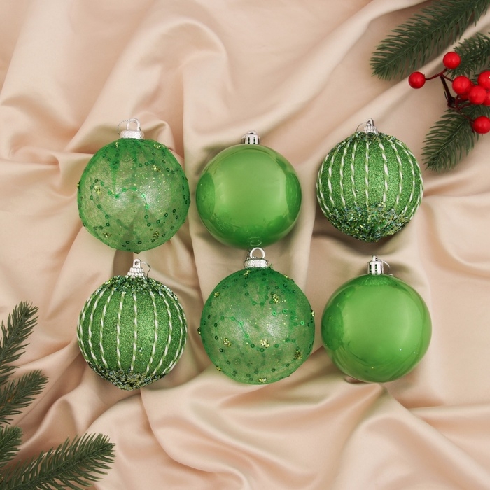 Набор шаров пластик d-8 см, 6 шт "Кейлеб" зелёный