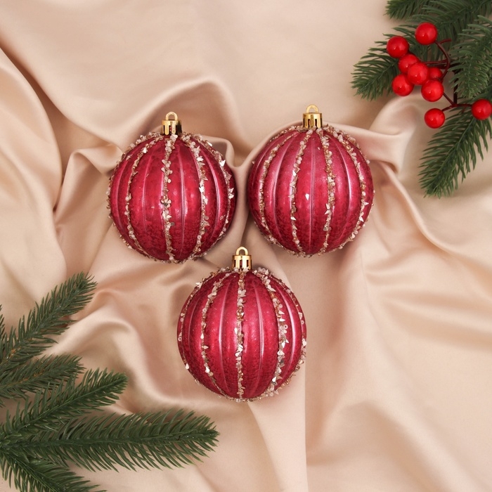 Набор шаров пластик d-8 см, 3 шт "Гремул" красный