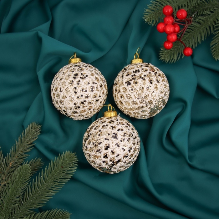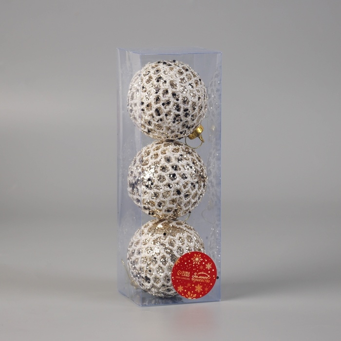 Набор шаров пластик d-8 см, 3 шт "Тьяго" белый
