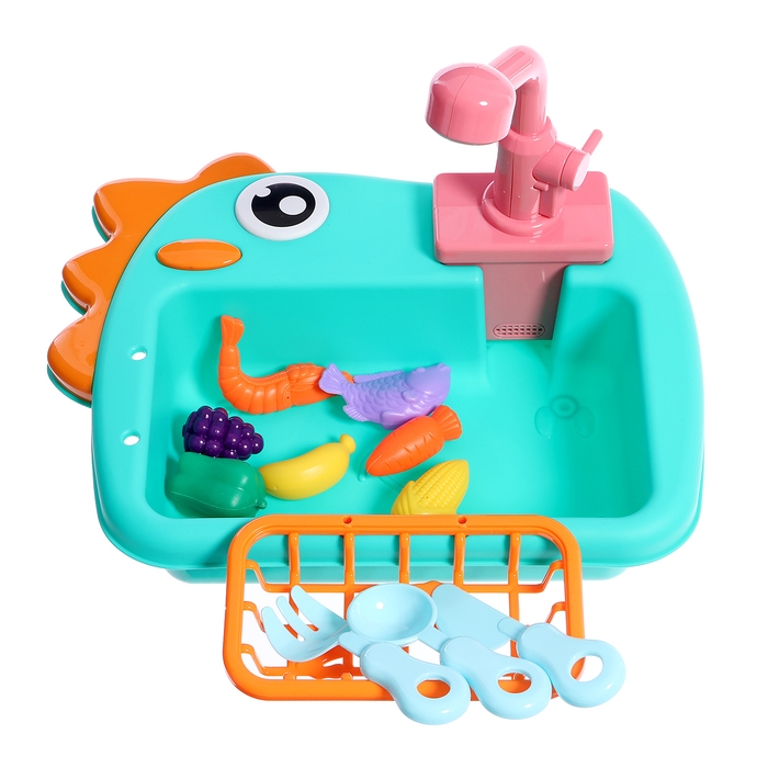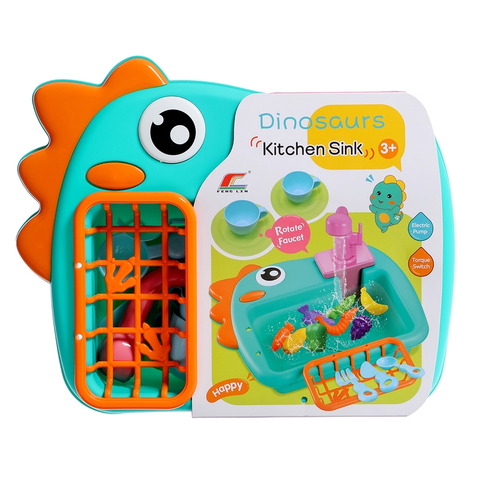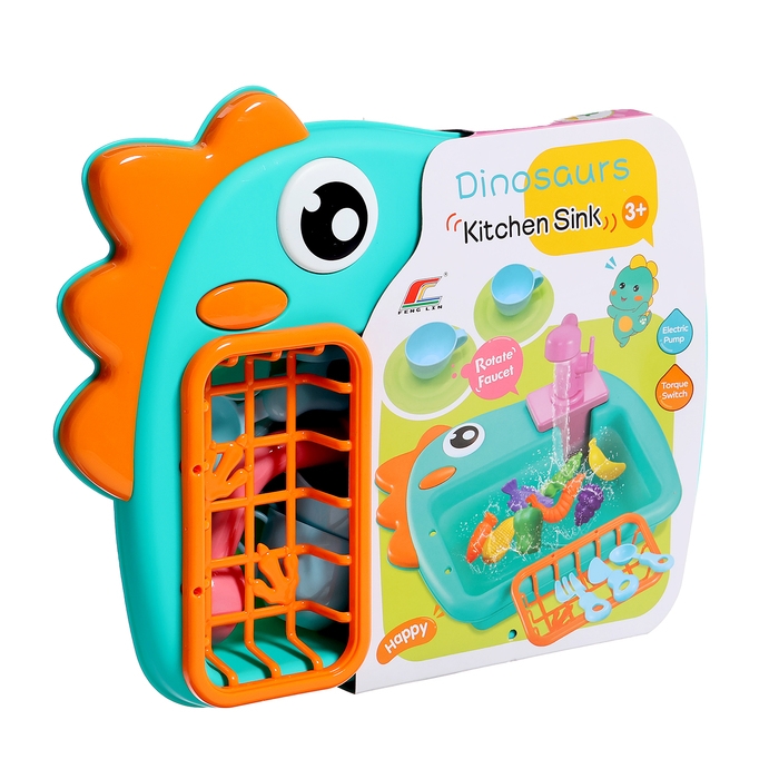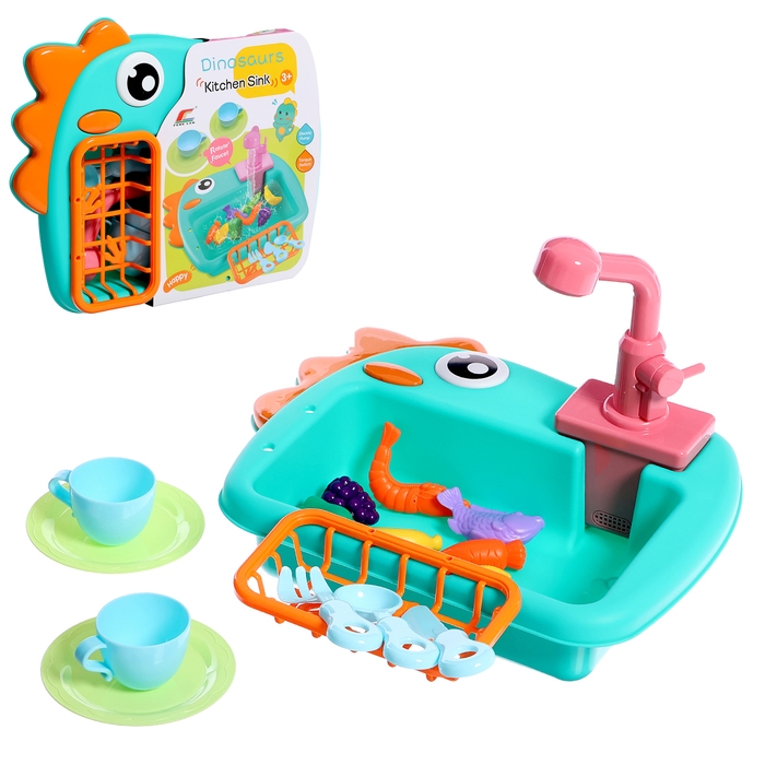 Игровой модуль кухни «Раковина-Динозаврик», с набором продуктов МИКС, вода циркулирует