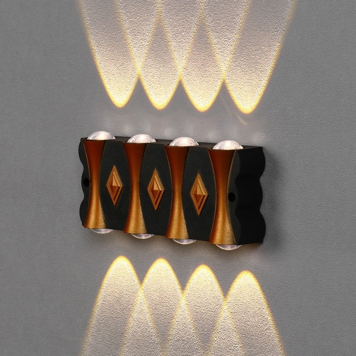 Светильник фасадный «Глосс», FSD-044, 8 Вт, 3000К, 4 луча, IP65, 220 В, пластик, черный