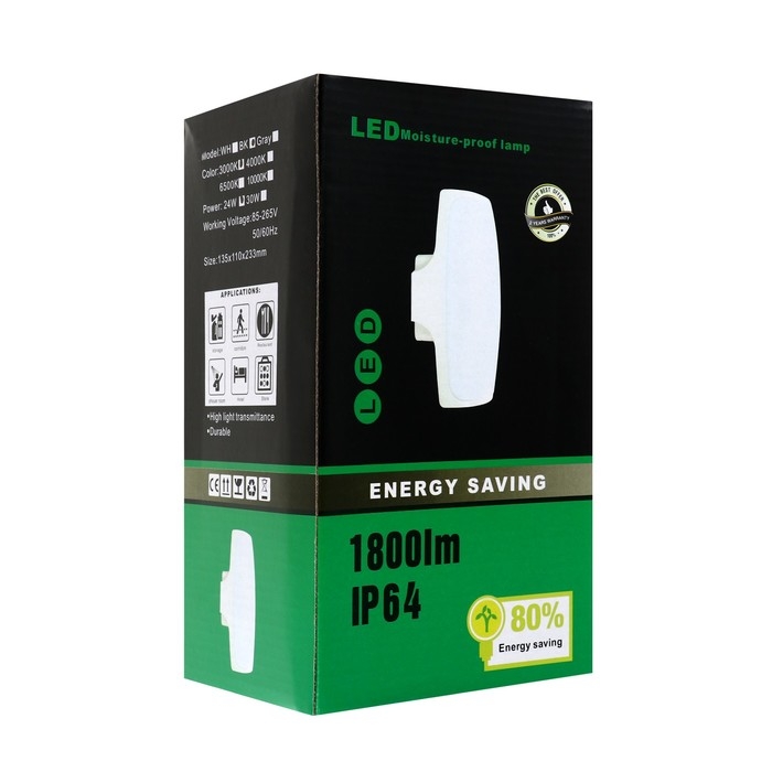 Светильник фасадный «Лайтвей», FSD-077, 24 Вт, 3000K, IP65, 220 В, пластик, черный