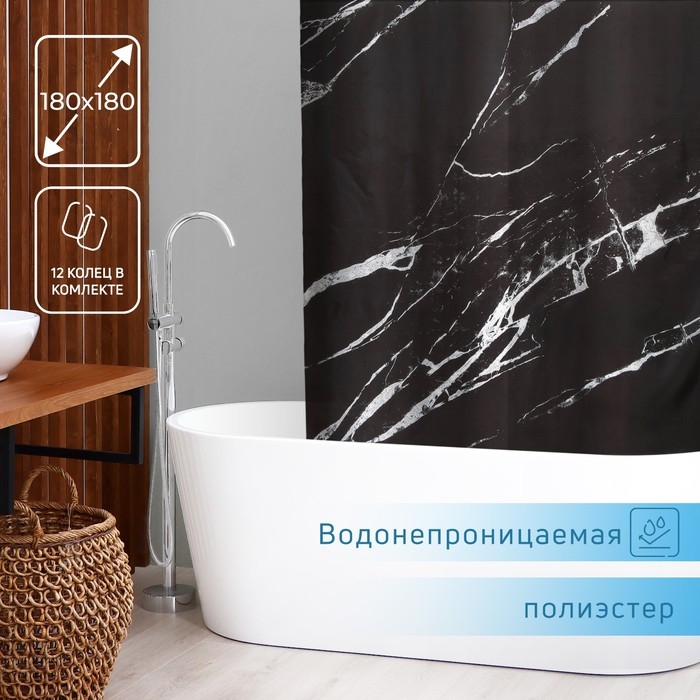 Штора для ванной SAVANNA, 180×180 см, цвет чёрный