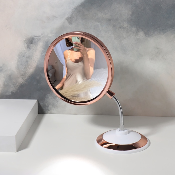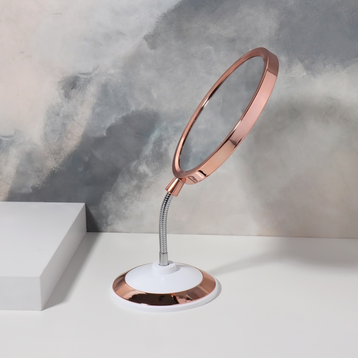 Зеркало на гибкой ножке «Круг», с увеличением, d зеркальной поверхности 15,5 см, цвет медный/белый