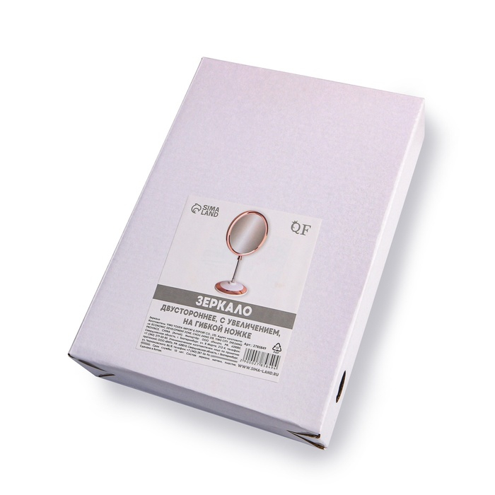 Зеркало на гибкой ножке «Овал», двустороннее, с увеличением, зеркальная поверхность 14 × 17 см, цвет медный/белый