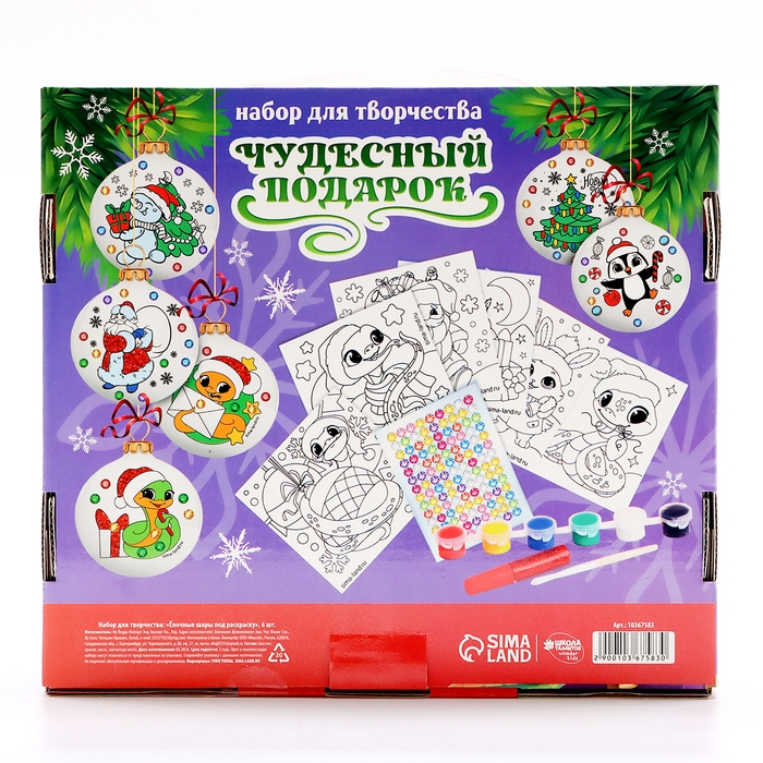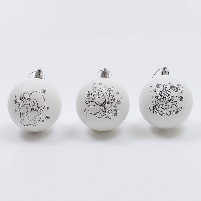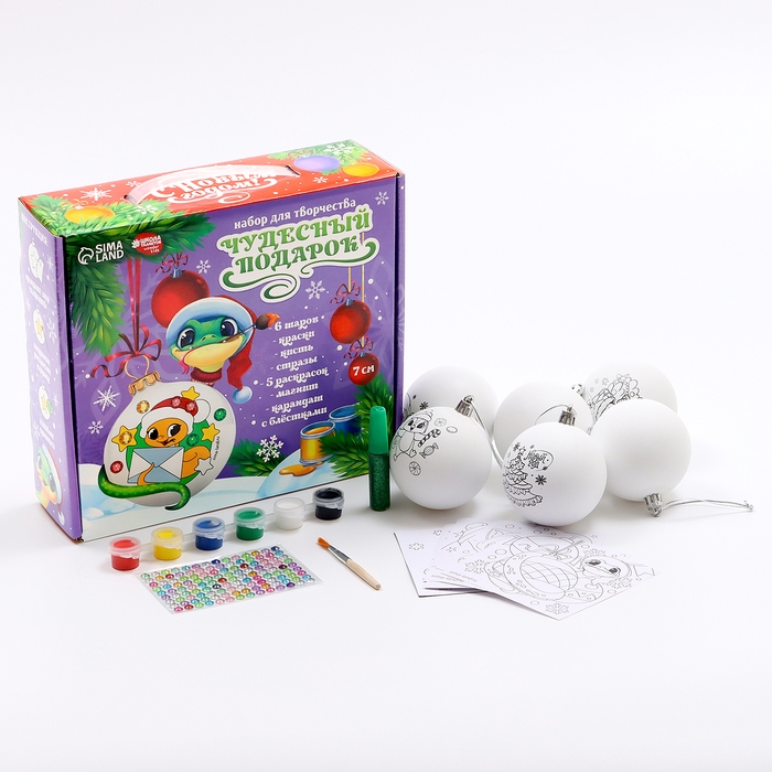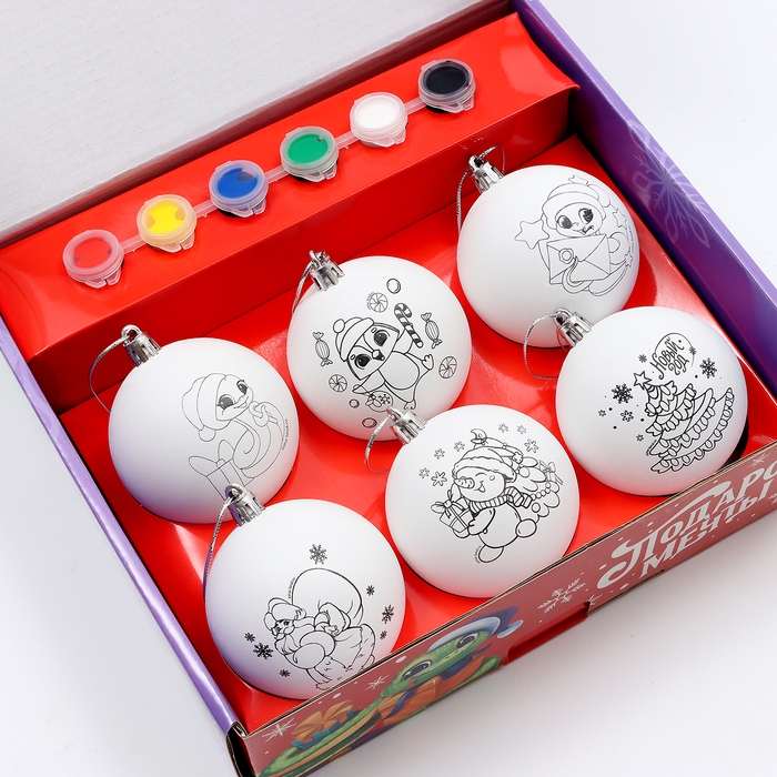 Ёлочные шары под раскраску на новый год «Чудесный подарок»», d = 7 см, новогодний набор для творчества