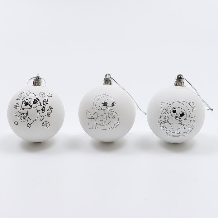 В наборе шары с нанесённым рисунком. Вам остаётся лишь проявить фантазию и раскрасить их на свой вкус. Набор шаров также станет прекрасным подарком друзьям и близким.