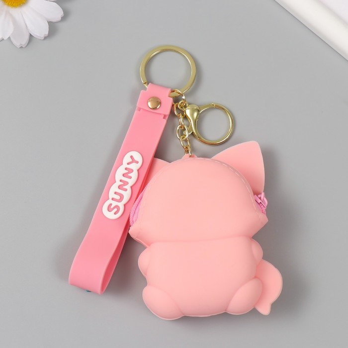Брелок кошелёк с карабином, ремешком силикон "Лисёнок с цветочком" антистресс 2,5х7,8х9 см 1047326