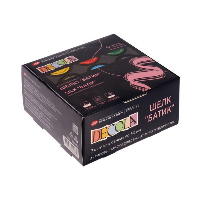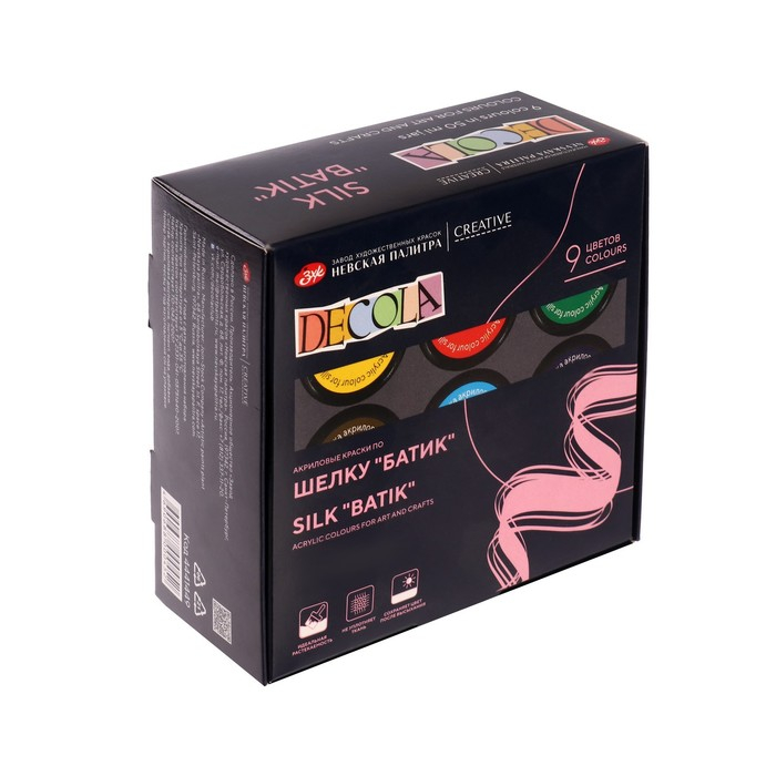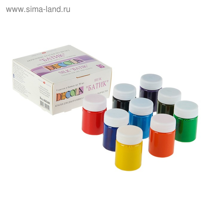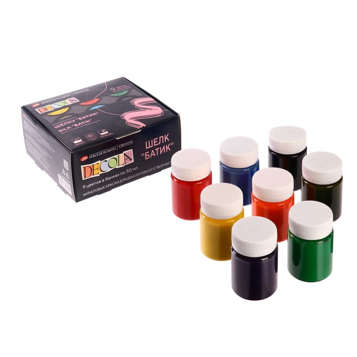 Краска по ткани (шелку), набор 9 цветов х 50 мл, ЗХК Decola "Батик" акриловая на водной основе, (4441449)