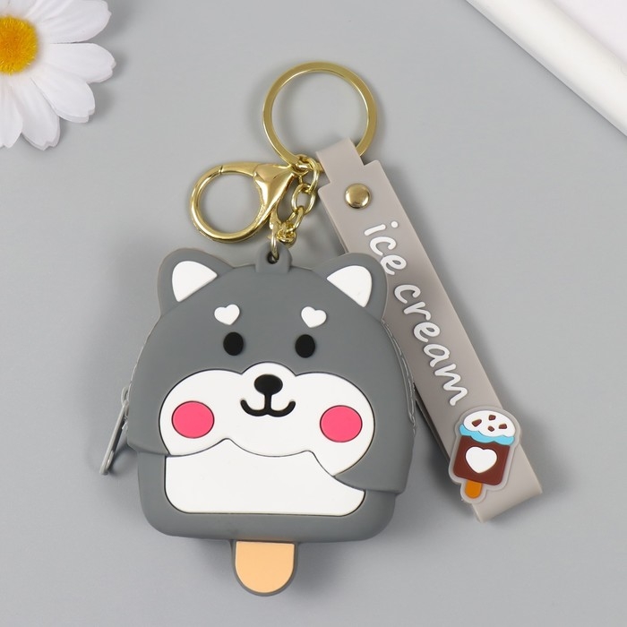 Брелок кошелёк с карабином, ремешком силикон "Хаски-эскимо" 2,5х7,2х9 см