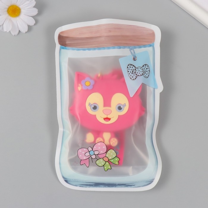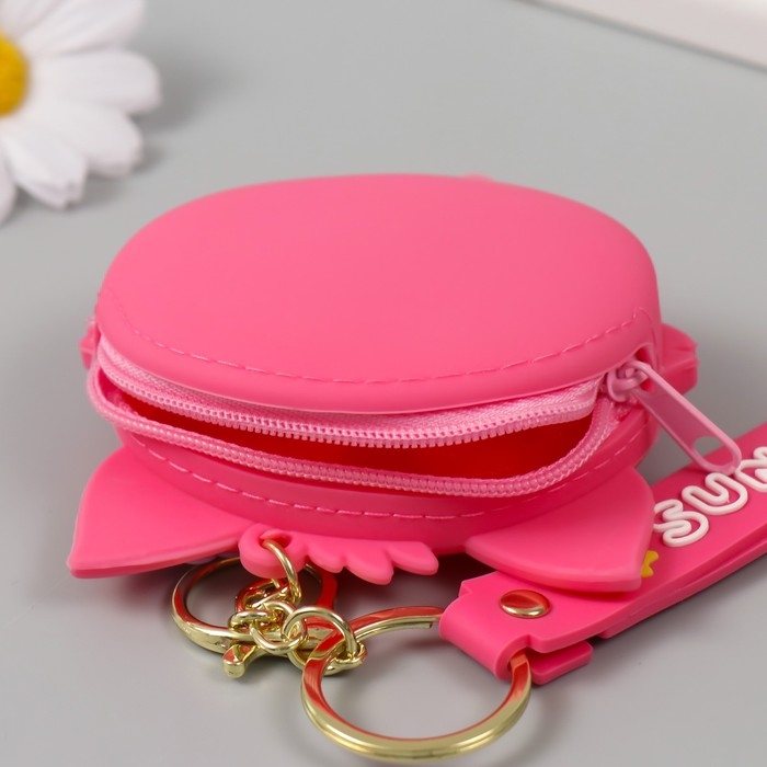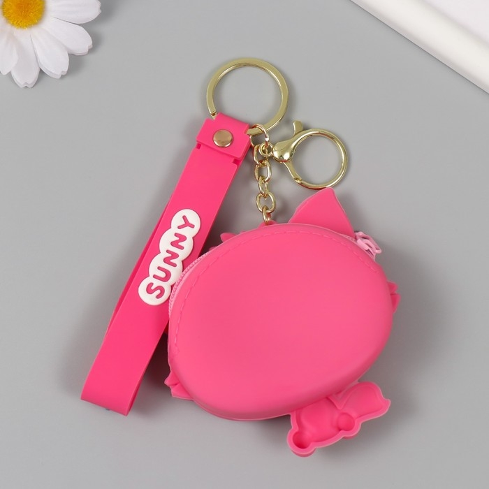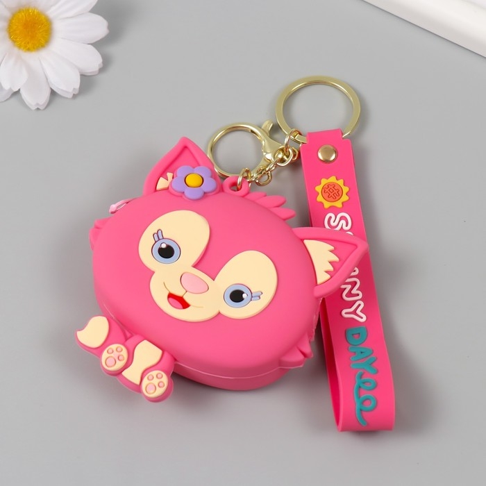 Брелок кошелёк с карабином, ремешком силикон "Котёнок с цветочком" 3х8,5х8,3 см