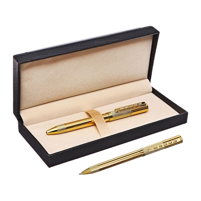 Ручка подарочная шариковая в кожзам футляре поворотная Стиль корпус золото