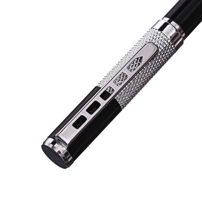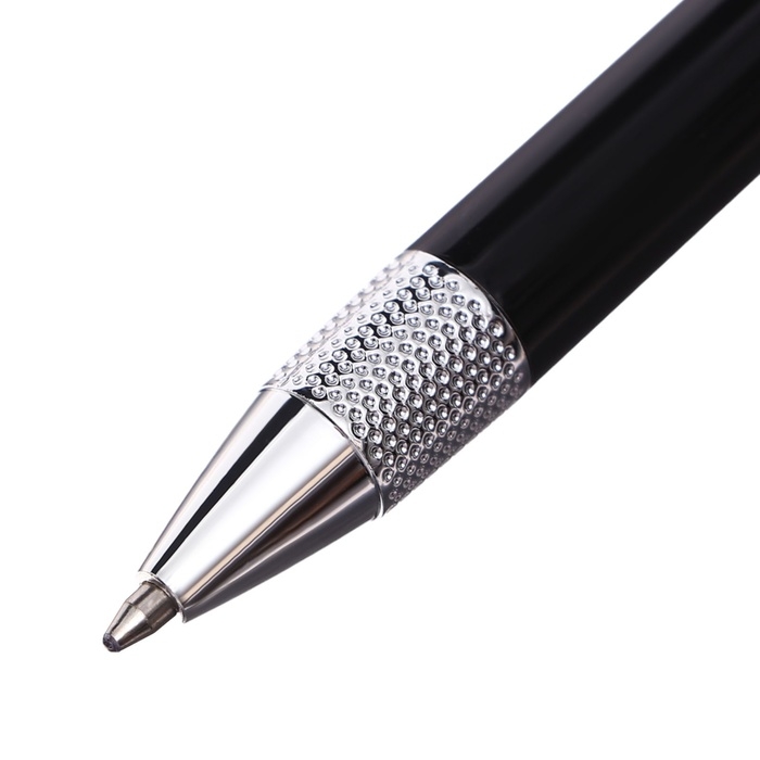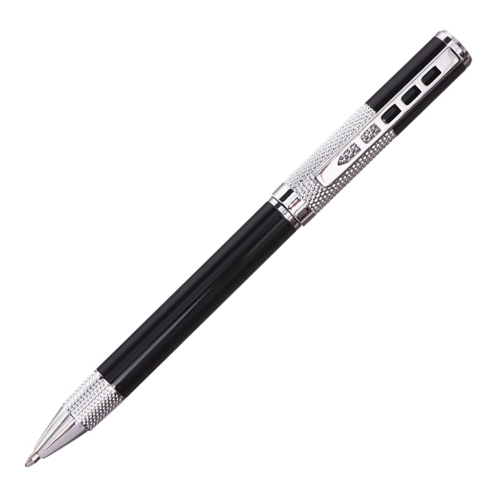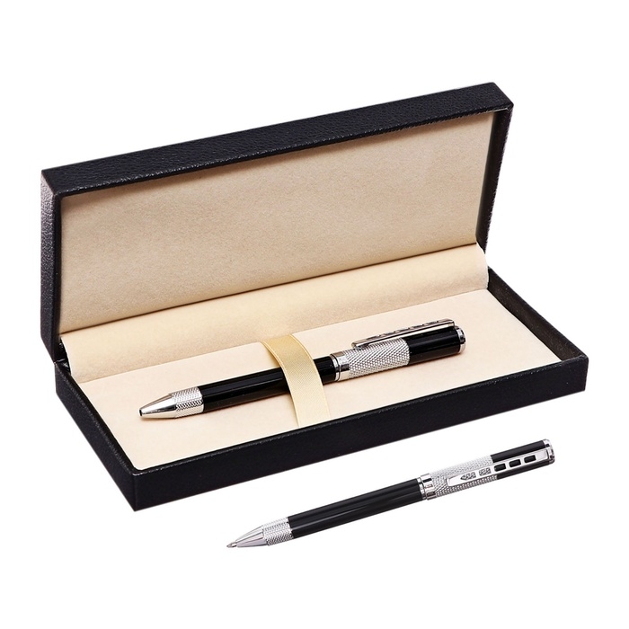 Ручка подарочная шариковая в кожзам футляре поворотная Стиль корпус черный/серебро