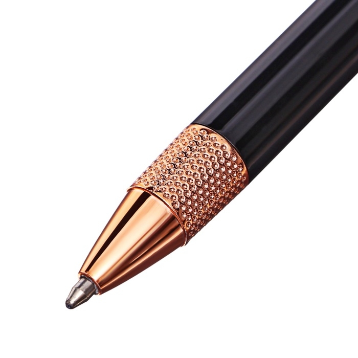 Ручка подарочная шариковая в кожзам футляре поворотная Стиль корпус черный/медь