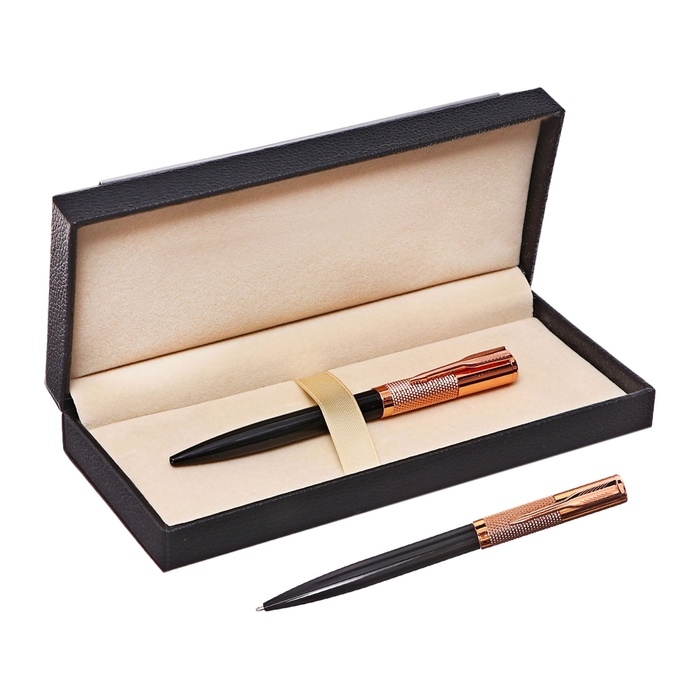 Ручка подарочная шариковая в кожзам футляре поворотная ПБ корпус черный/золото