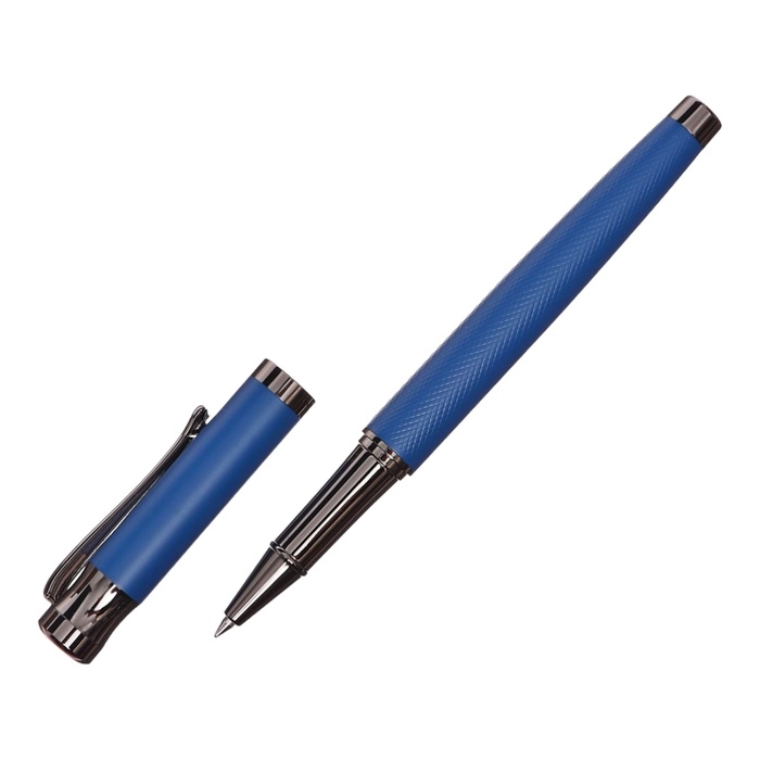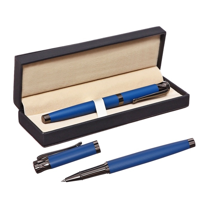 Ручка подарочная роллер в кожзам футляре Офис корпус синий