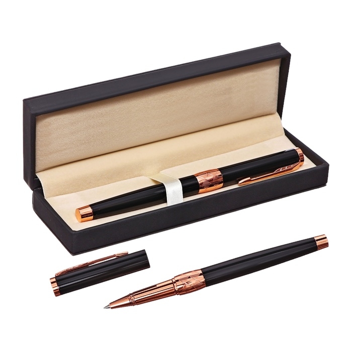 Ручка подарочная роллер в кожзам футляре Грант корпус черный/бронза