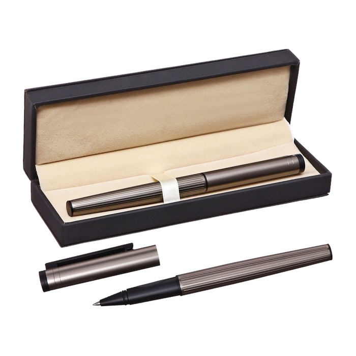 Ручка подарочная роллер в кожзам футляре Грань корпус бронза/черный