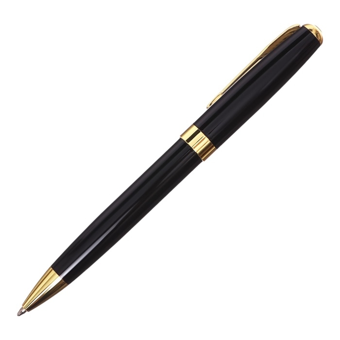 Ручка подарочная шариковая в кожзам футляре поворотная ПБ корпус черный/золото