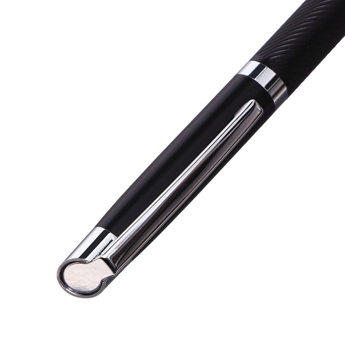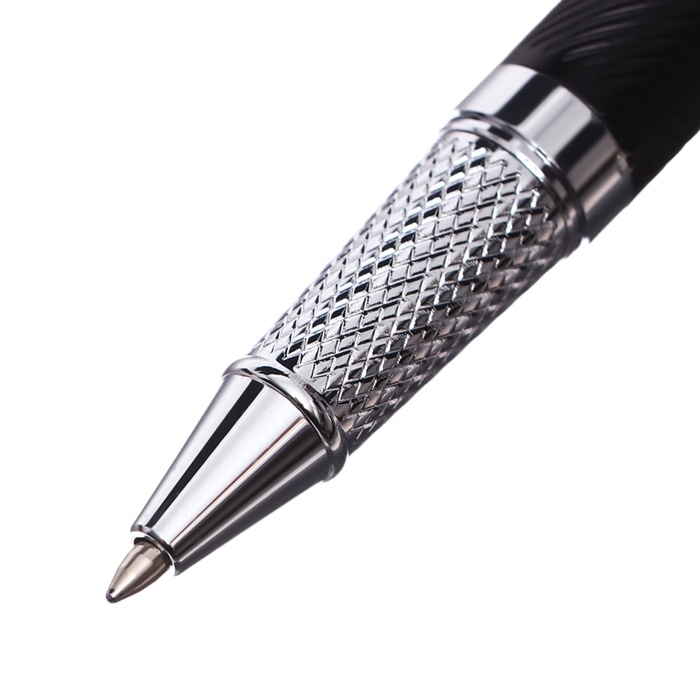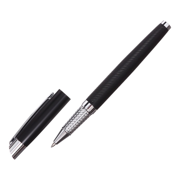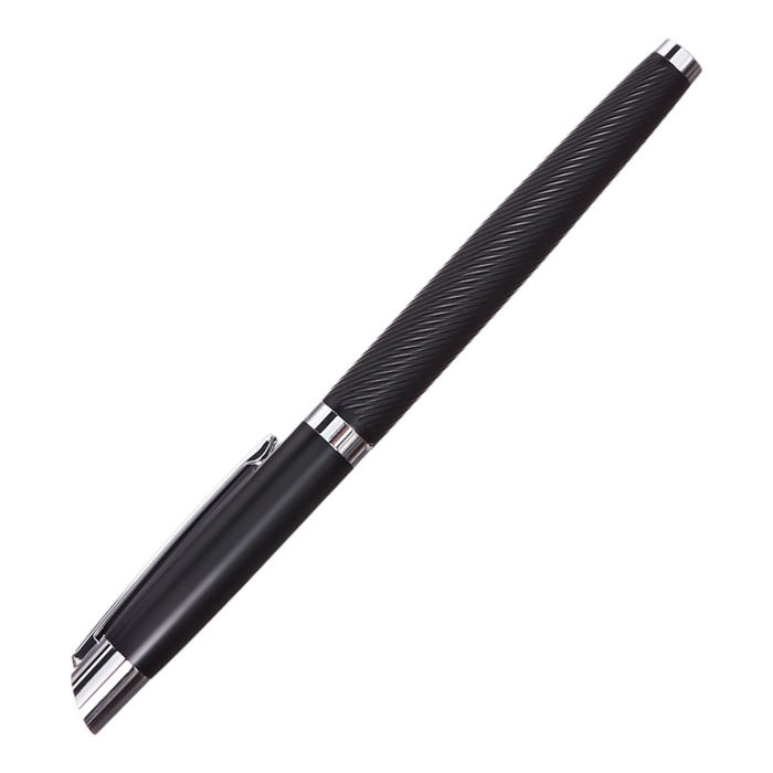 Ручка подарочная роллер в кожзам футляре Карбон корпус черный/серебро