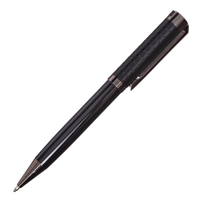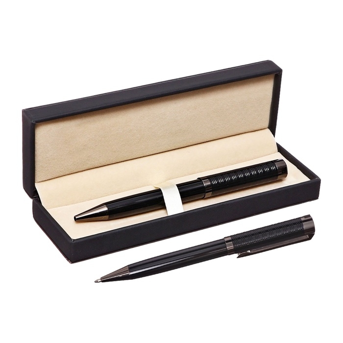 Ручка подарочная шариковая в кожзам футляре поворотная Эксклюзив корпус черный/серебро