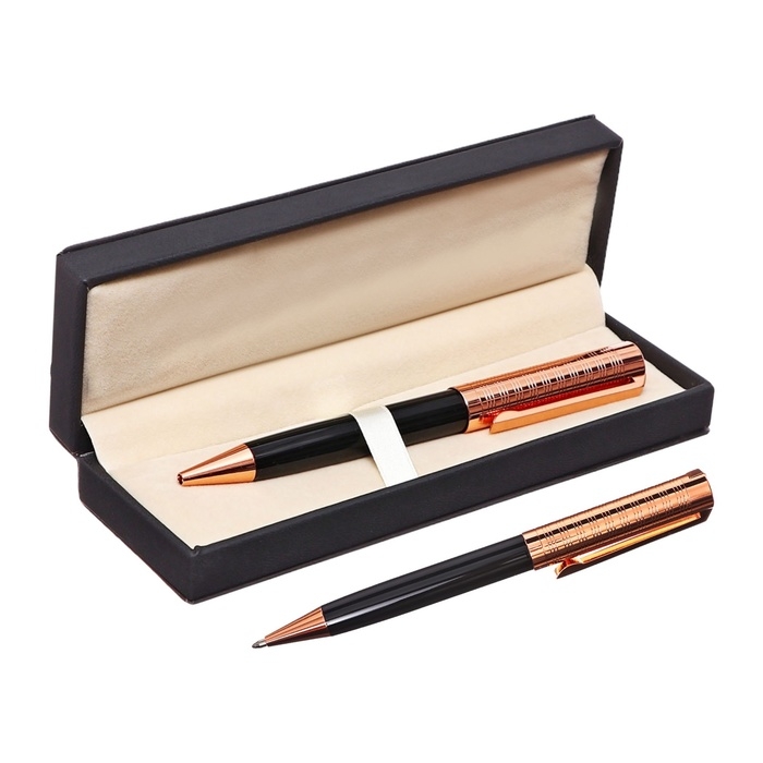 Ручка подарочная шариковая в кожзам футляре поворотная Винтаж корпус черный/медь