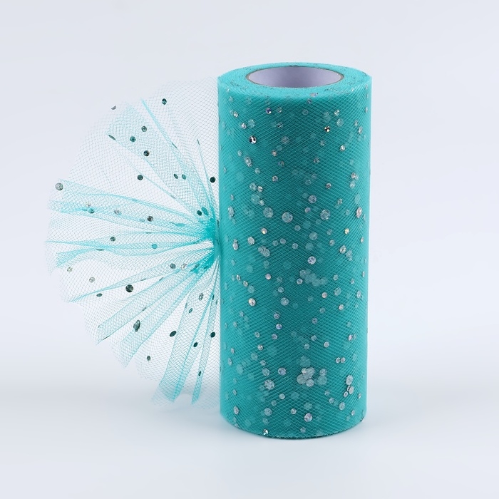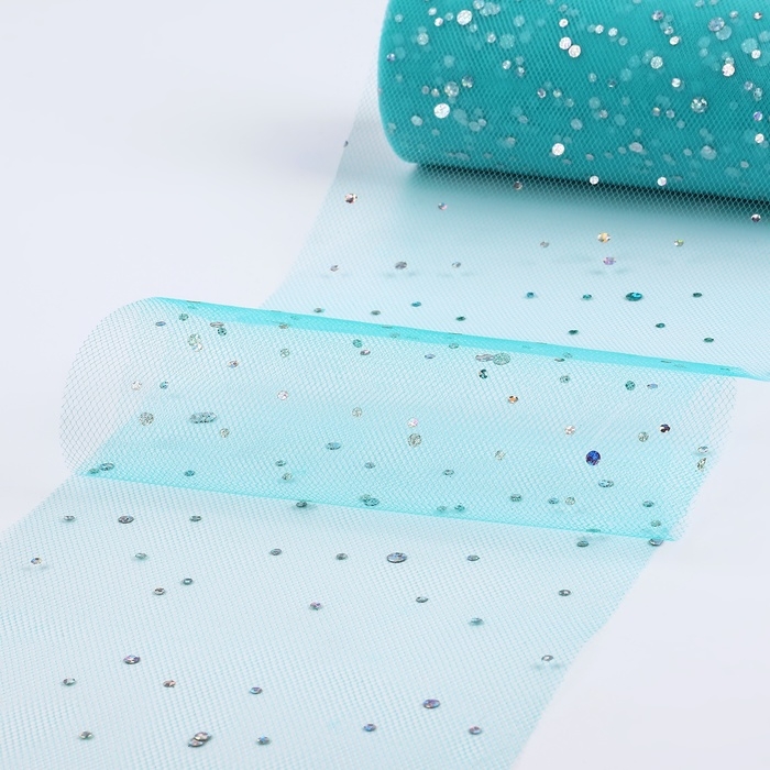 Фатин с блёстками, 15 см, 11 ± 1 г/кв.м, 23 ± 1 м, цвет тиффани №43