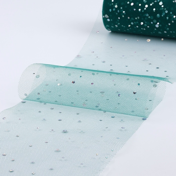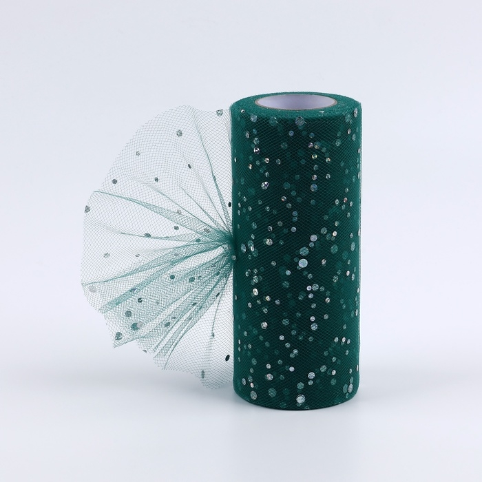 Фатин с блёстками, 15 см, 11 ± 1 г/кв.м, 23 ± 1 м, цвет тёмно-зелёный №59