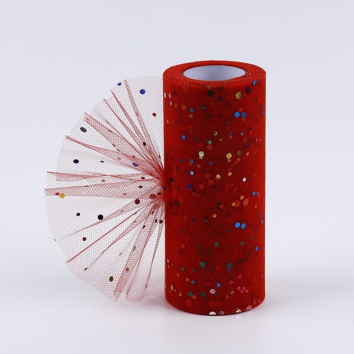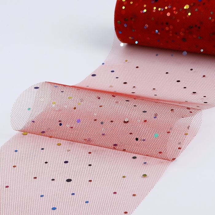 Фатин с разноцветными блёстками, 15 см, 11 ± 1 г/кв.м, 23 ± 1 м, цвет красный №17