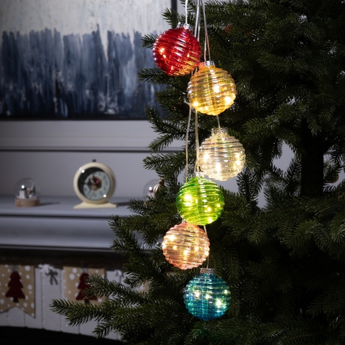 Гирлянда «Нить-гроздь» 60 см, нить прозрачная, «Красочные шары», 30 LED, 4.5 В, батарейки ААх3 (нет в комплекте), свечение тёплое белое