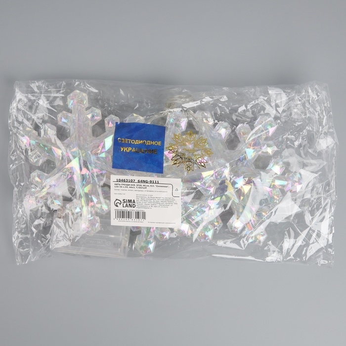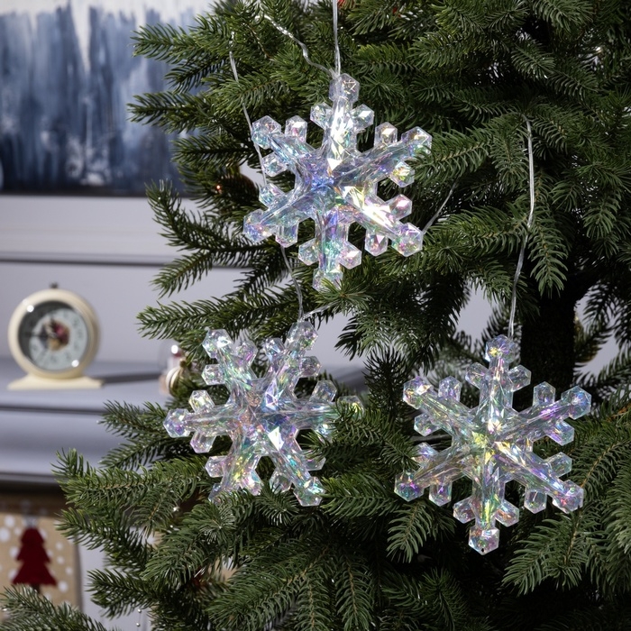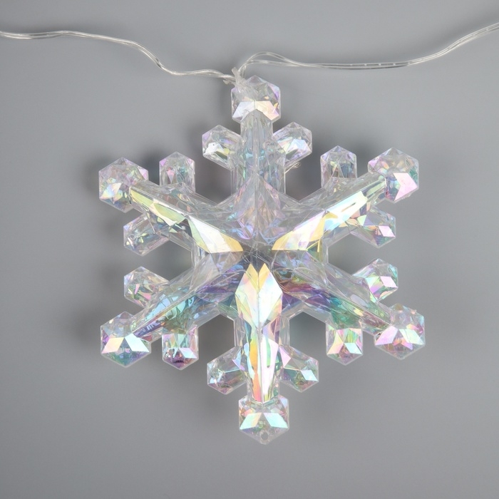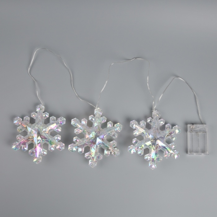 Гирлянда «Нить-грозди» 120 см, нить прозрачная, «Снежинки», 30 LED, 4.5В, батарейки ААх3 (нет в комплекте), свечение тёплое белое