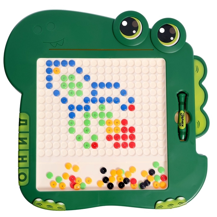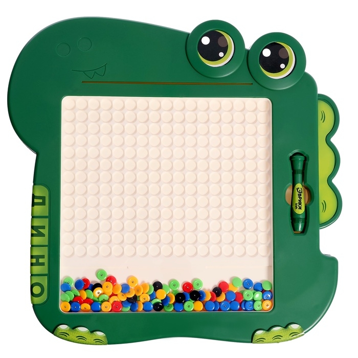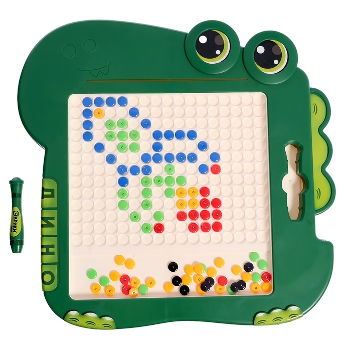 Магнитный планшет для рисования «Динозаврик» станет отличным инструментом для развития фантазии и координации у детей. Этот планшет позволяет создавать разнообразные изображения с помощью магнитного стилуса и разноцветных пуговок, превращая обучение в увлекательную игру.