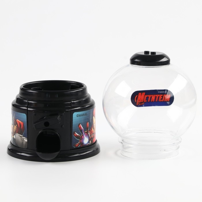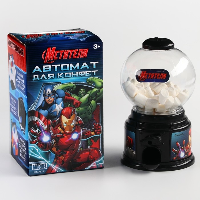 Автомат для конфет «Мстители» — это уменьшенная копия настоящей машинки для выдачи сладостей.