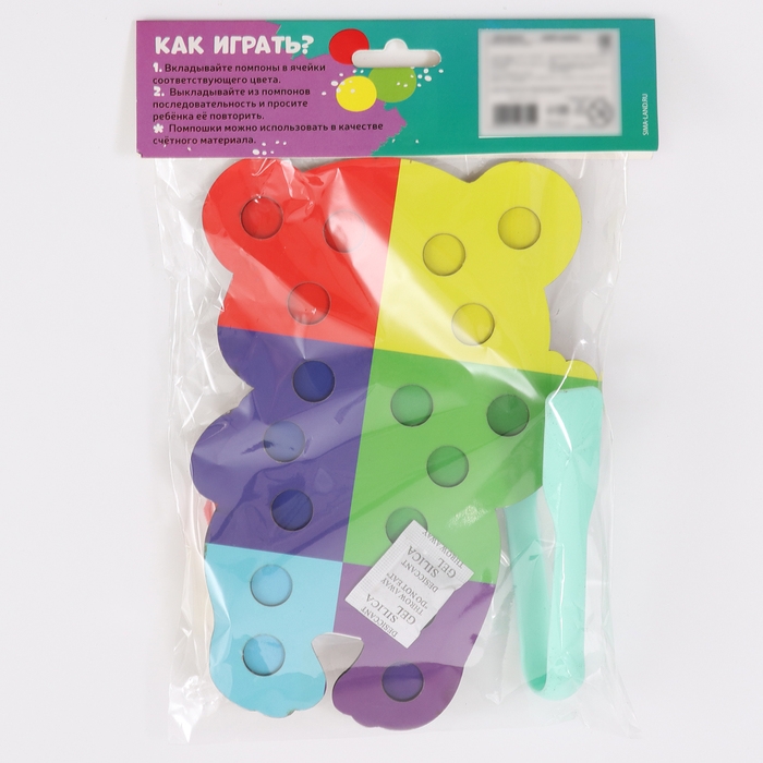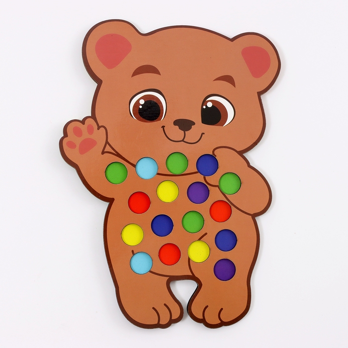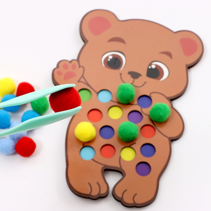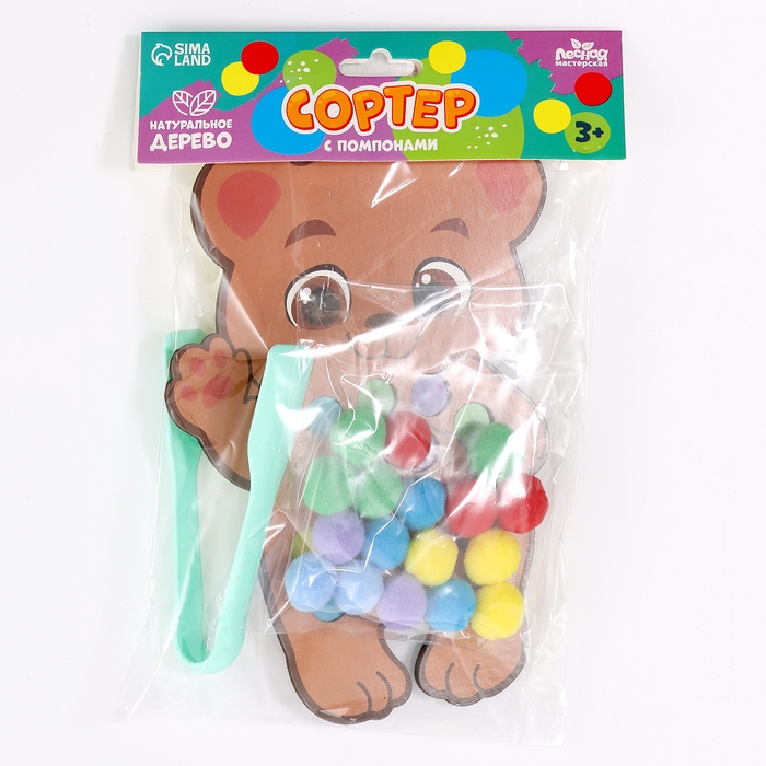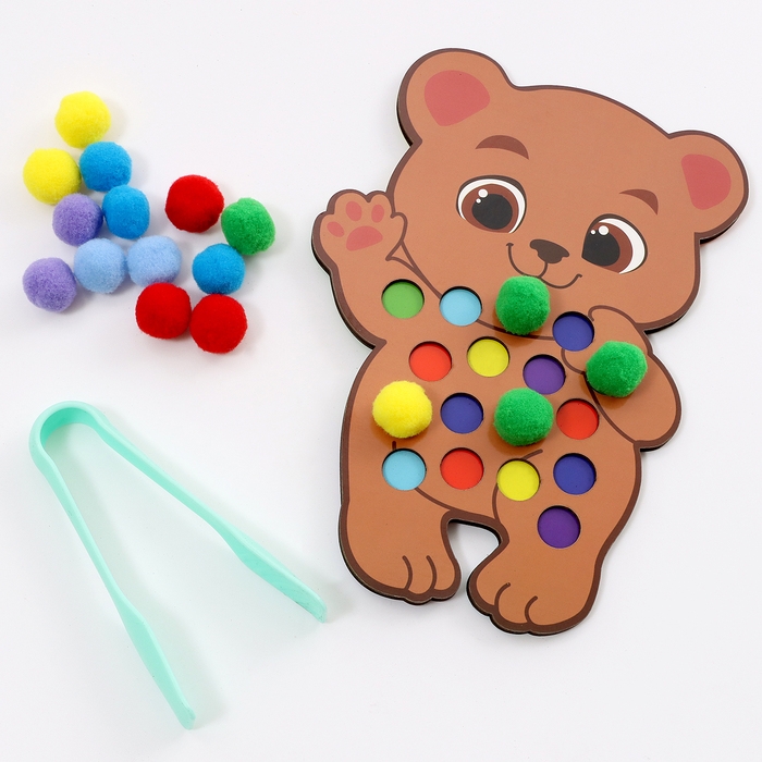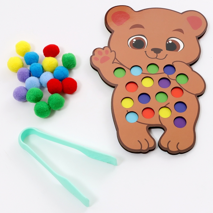 Сортер деревянный «Мишка» с помпонами и пинцетом, 15 х 21 см