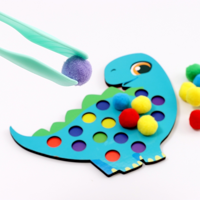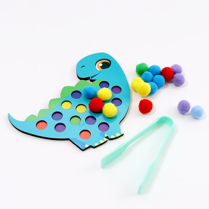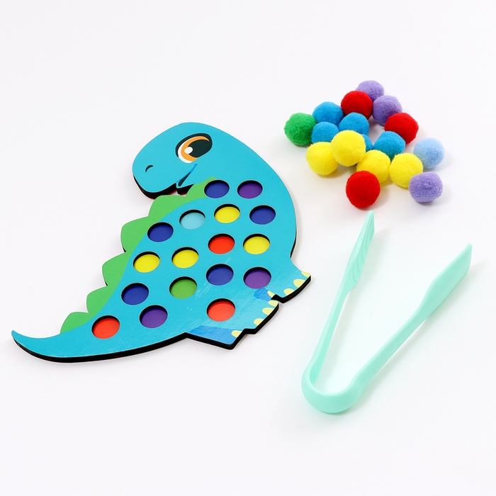 Сортер деревянный «Дино» с помпонами и пинцетом, 15 х 21 см