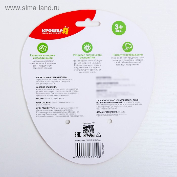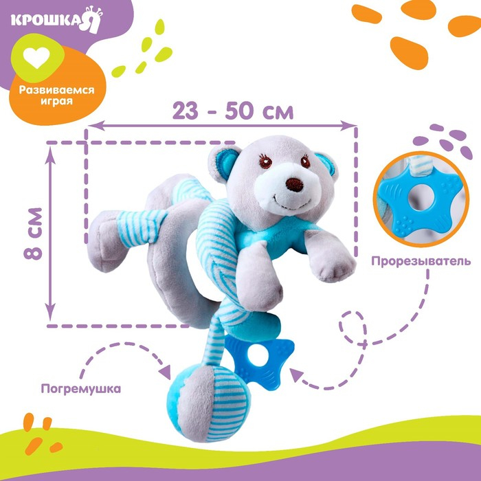Растяжка - спираль с игрушками дуга на коляску / кроватку для малышей 0+ «Мишка», цвет голубой, Крошка Я 259367