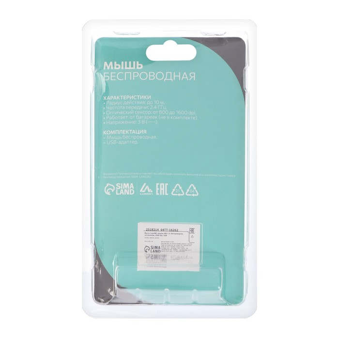 Мышь LuazON MB-1.0, беспроводная, оптическая, 1600 dpi, USB, белая