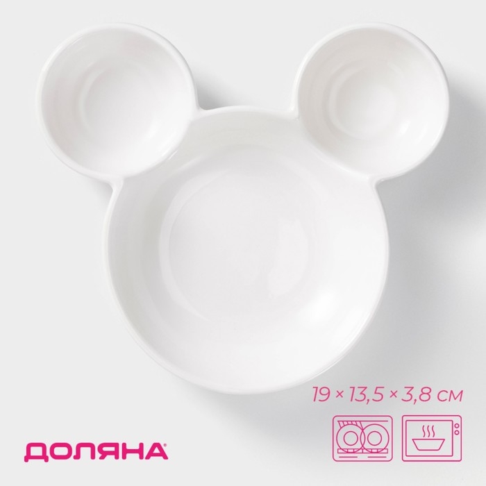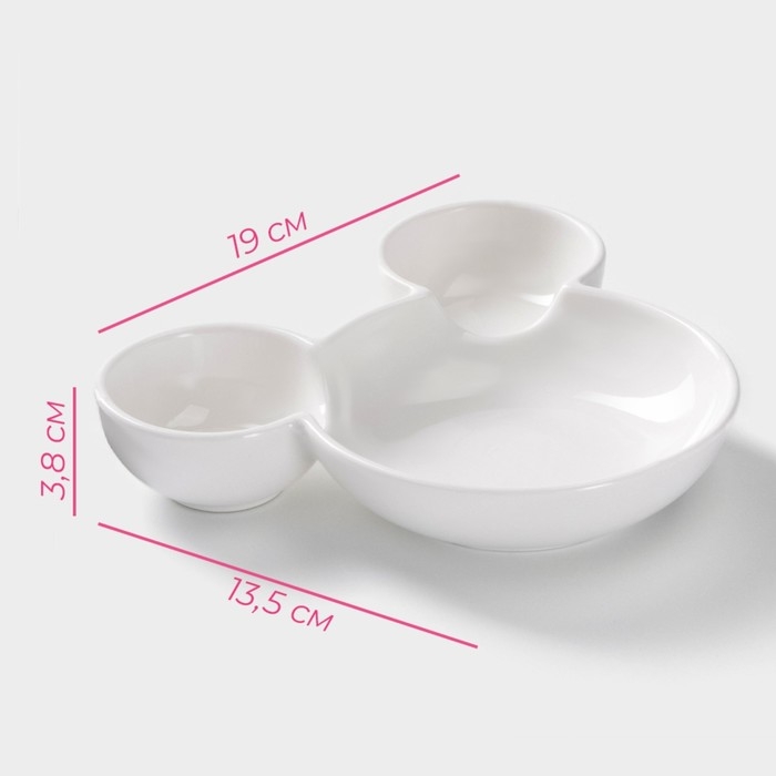 Менажница фарфоровая Доляна «Мишка», 400 мл, 19×13,5 см, 3 ячейки, цвет белый