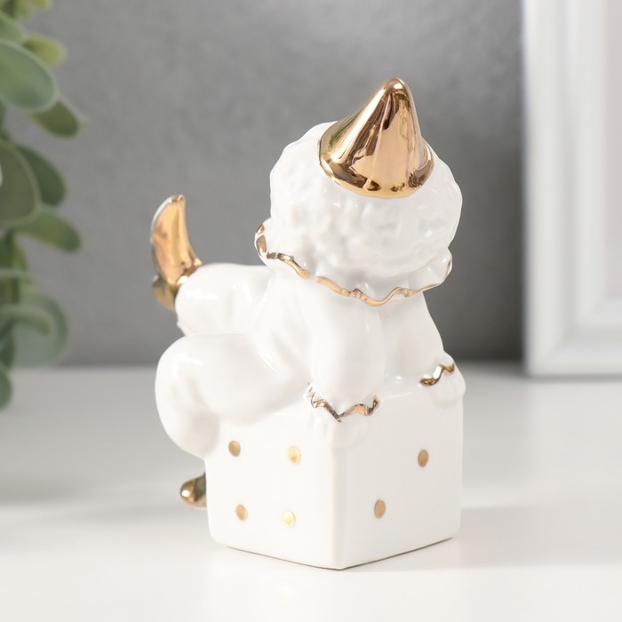 Сувенир керамика "Клоун на игральном кубике" белый с золотом, стразы 4,4х7х9,5 см