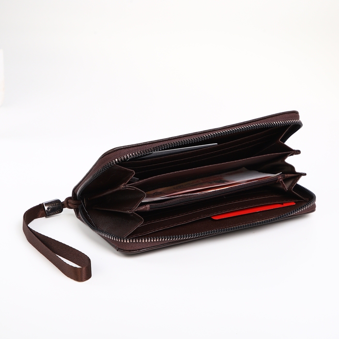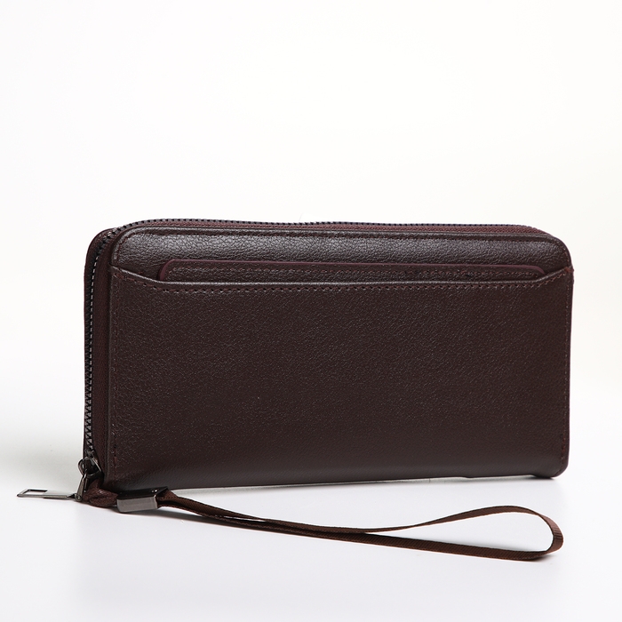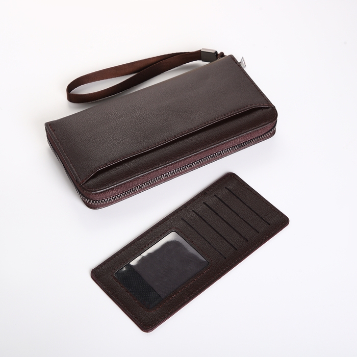 Портмоне-клатч мужской на молнии, цвет коричневый