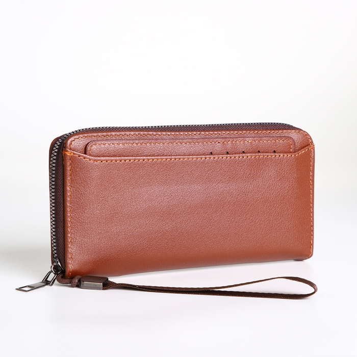 Портмоне-клатч мужской на молнии, цвет рыжий