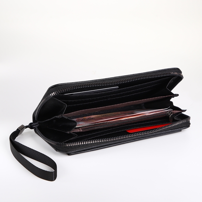 Портмоне-клатч мужской на молнии, цвет чёрный