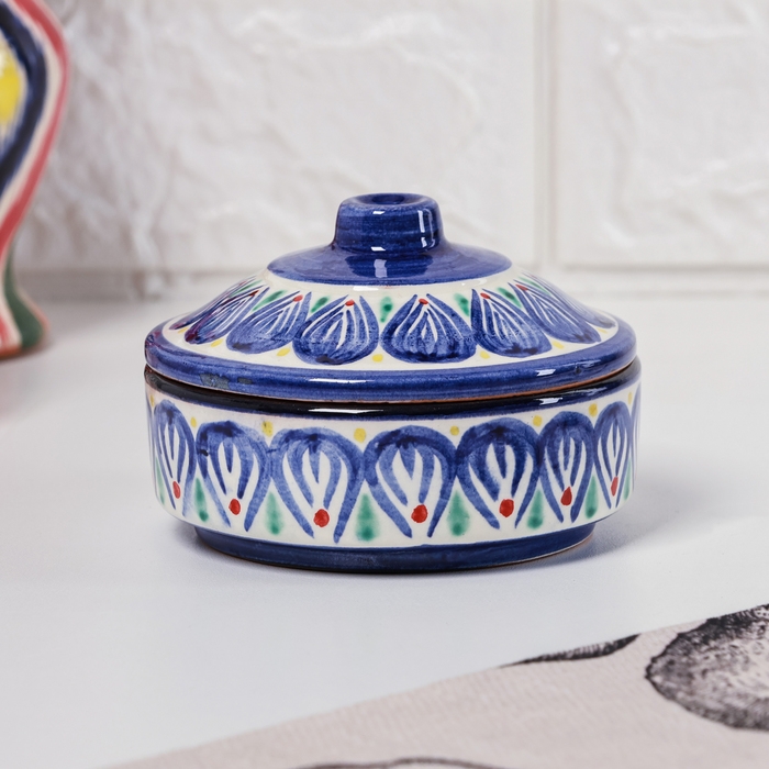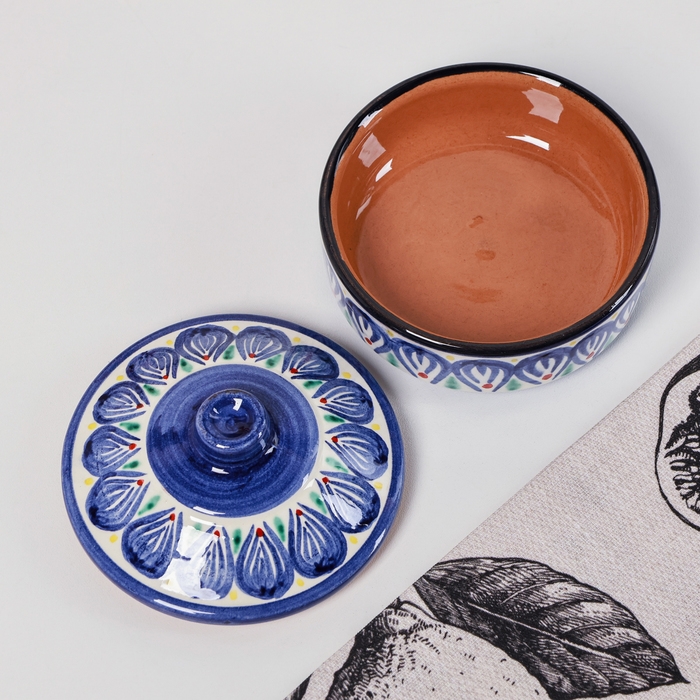 Сахарница Риштанская Керамика "Цветы", 250 мл, синяя