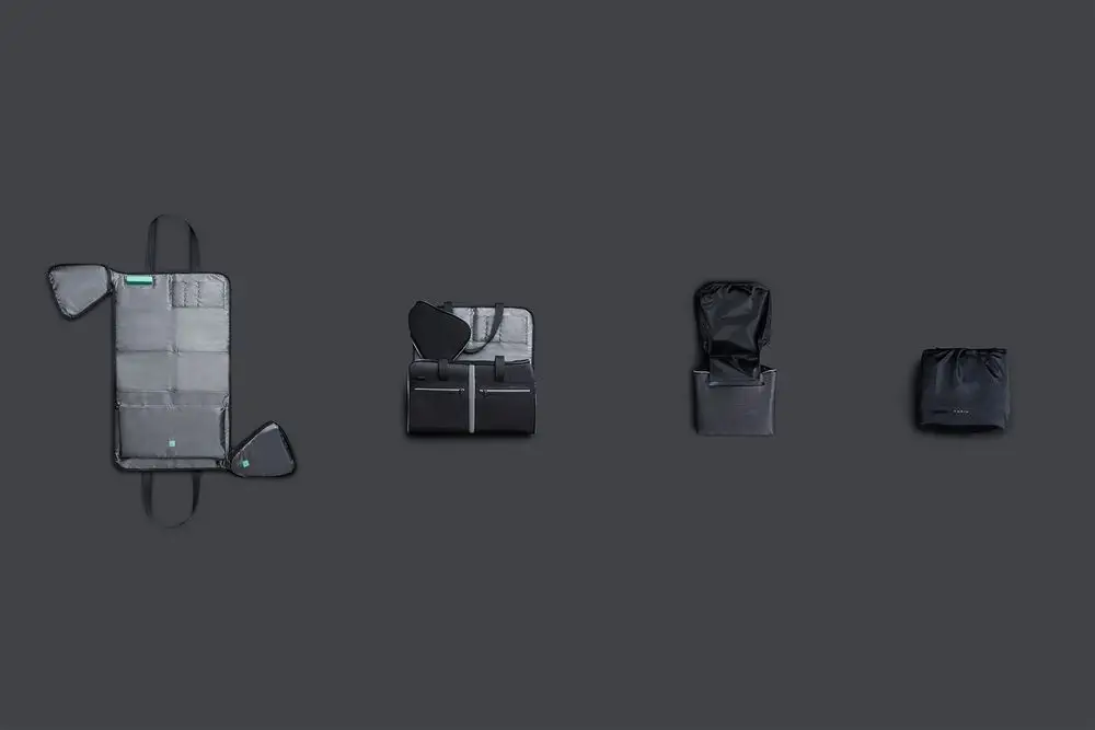 Благодаря единой молнии, идущей по всей сумке, она складывается в пришитый чехол, поэтому не займет много места в багаже или в шкафу.