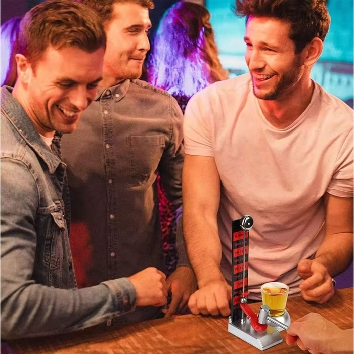 В этом настольном варианте наградой победителю будут не только восторг публики, но и рюмка любимого напитка. Правила очень просты: бьёте кувалдой по трамплину для шарика и выполняете задание, написанное на том уровне, до которого добрался шарик. Не все задания включают в себя взаимодействие с алкоголем, но условия соревнования могут стать сложней и интересней, если участники решат выпивать после каждого удара.