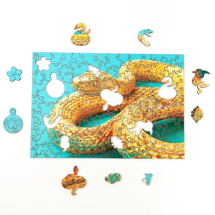 Пазлы фигурные деревянные «Золотая змея», 137 элементов, символ года 2025